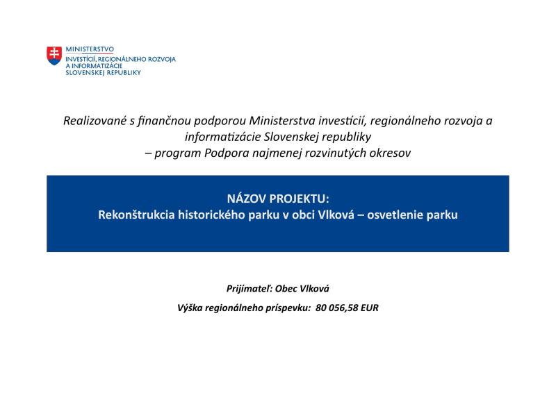 Účelom projektu je zvýšenie návštevnosti obce Vlková v oblasti cestovného ruchu.