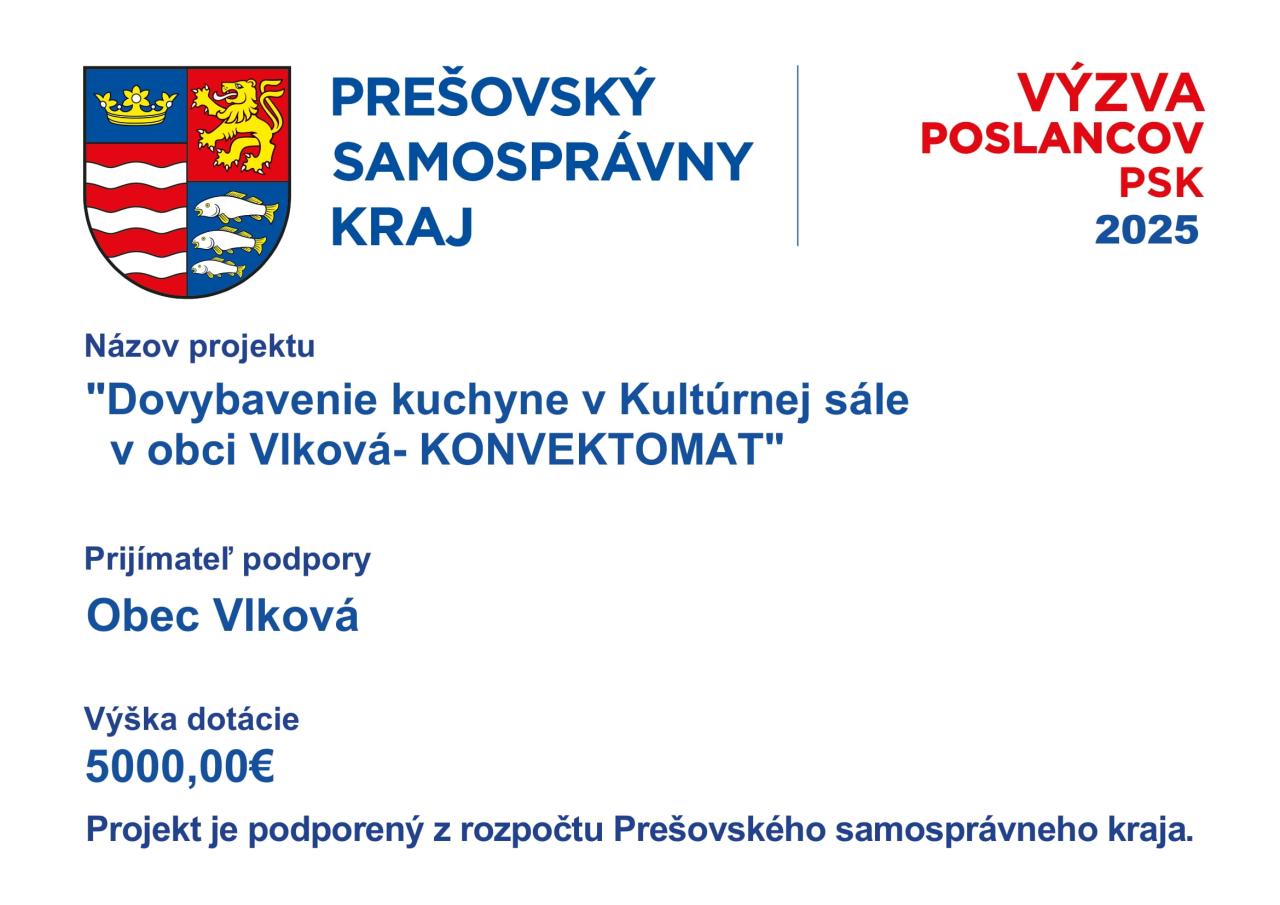 Dovybavenie kuchyne v kultúrnej sále v obci Vlková