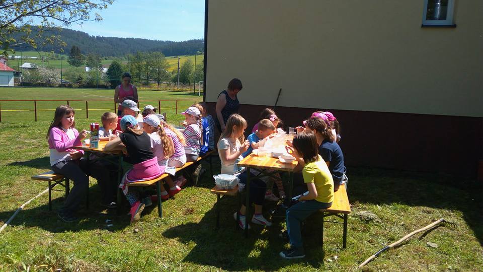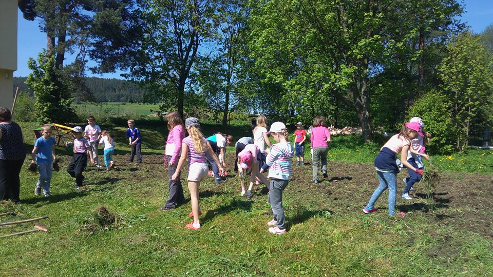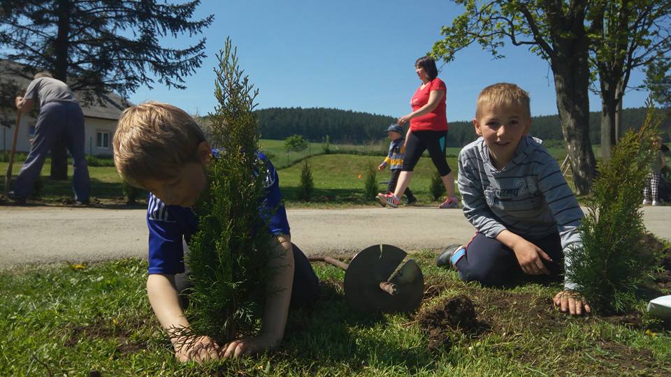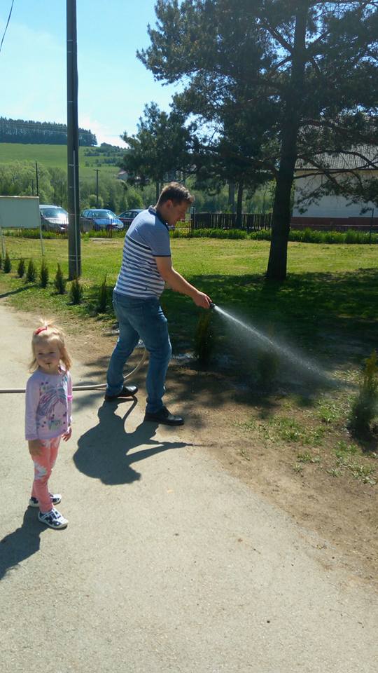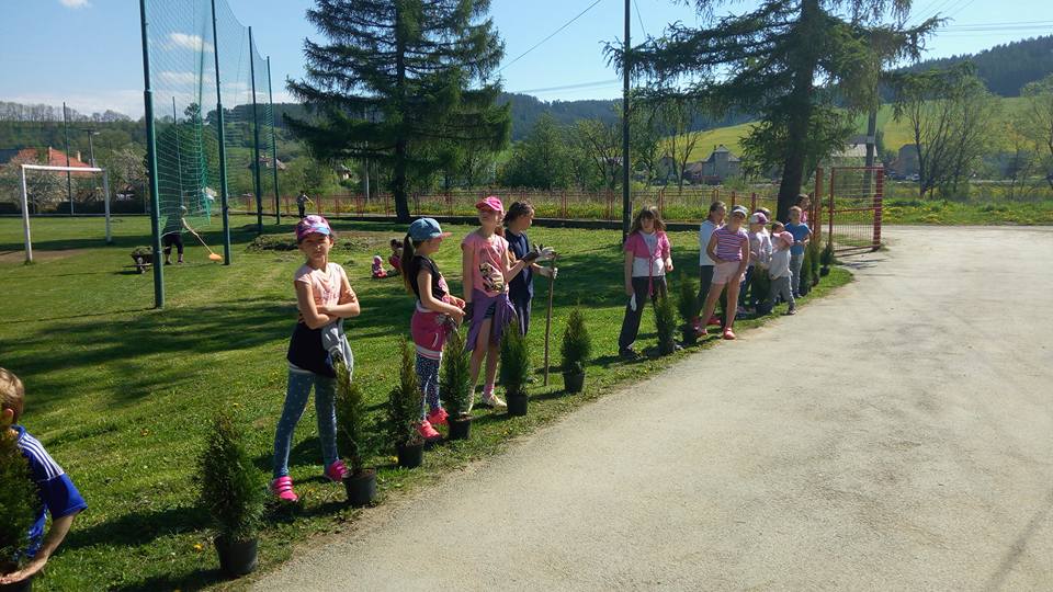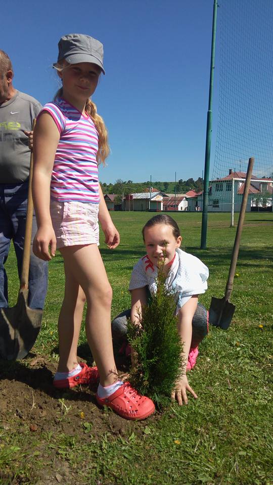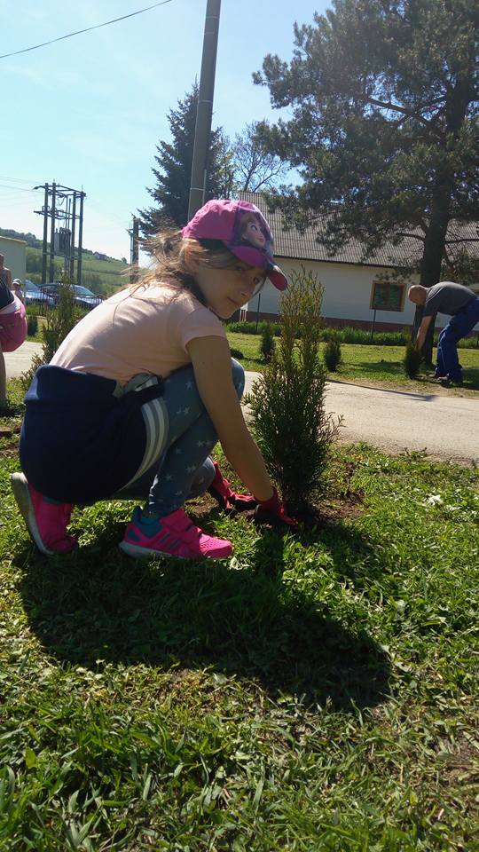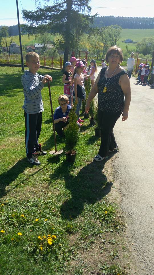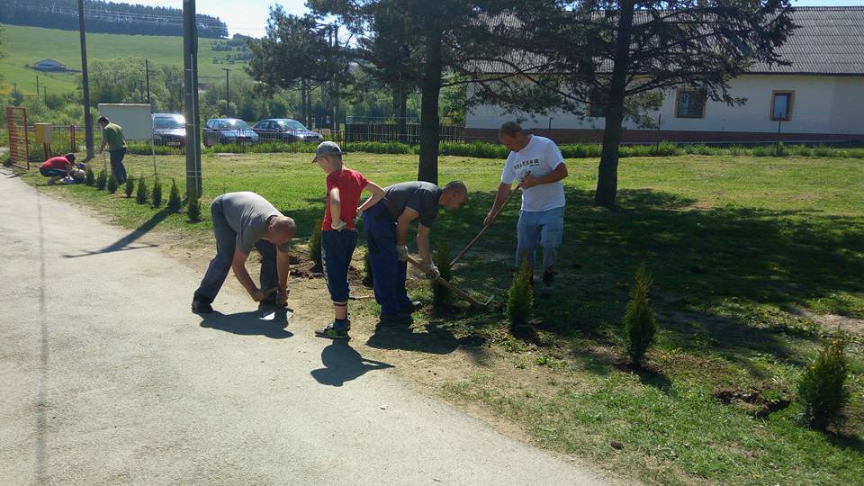 Oralo sa, sadilo, kosilo, hrabalo, rýľovalo, okopávalo, gulášovalo :-) pomáhala každá ruka čo prišla. Ďakujeme zúčastneným rodičom, starým rodičom, p. učiteľkám z MŠ, p. učiteľke zo ZŠ, pani kuchárke za výborný gulášik, p. upratovačkám a hlavne p. starostovi a pánoví riaditeľovi za skvelý nápad