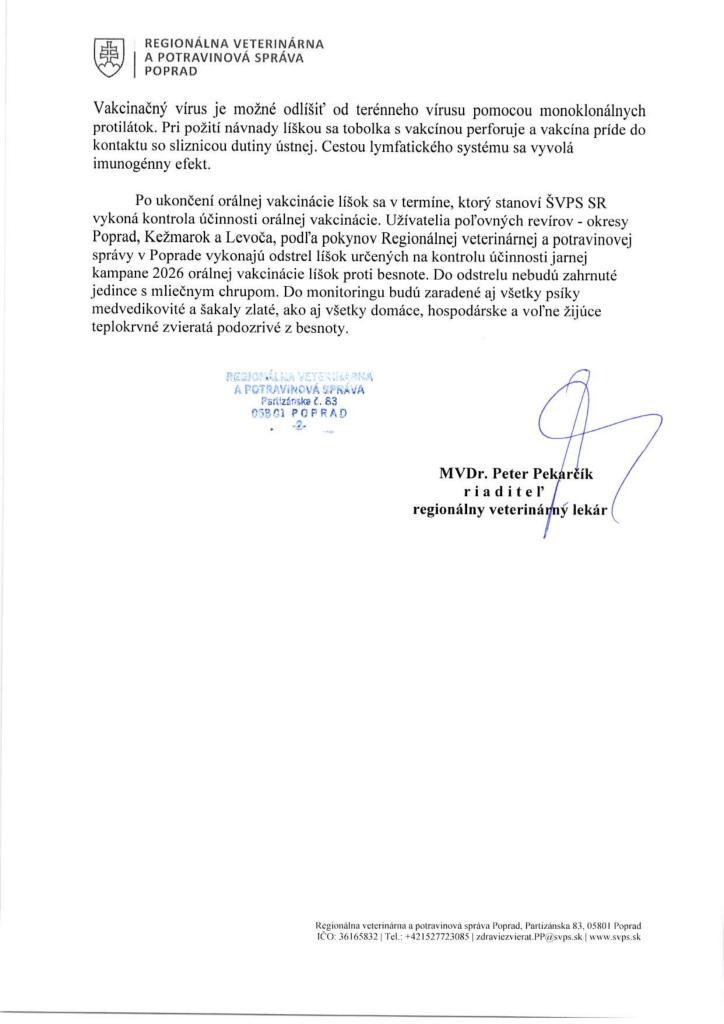 Štátna veterinárna a potravinová správa SR informuje o jarnej kampani očkovania voľne žijúcich líšok proti besnote.